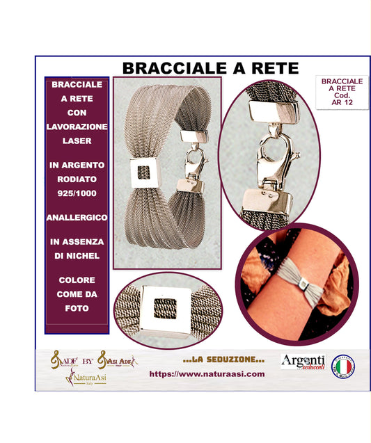 AR BRACCIALE A RETE CON LAVORAZIONE LASER IN ARGENTO RODIATO 925/1000 ANALLERGICO NICHEL FREE